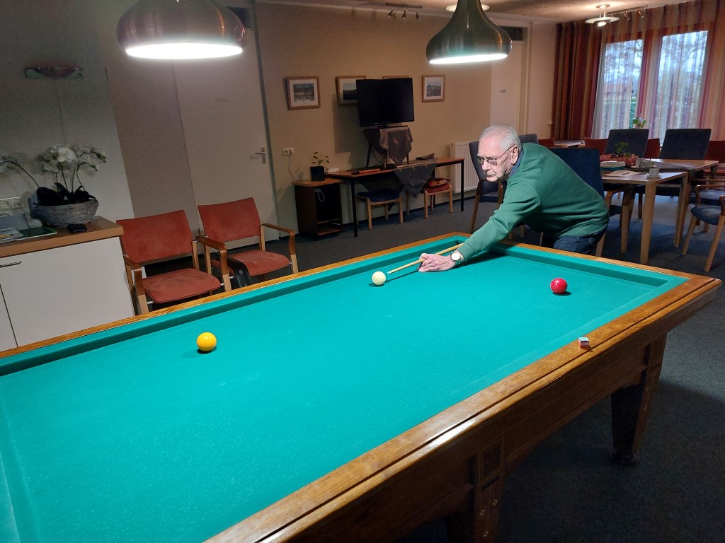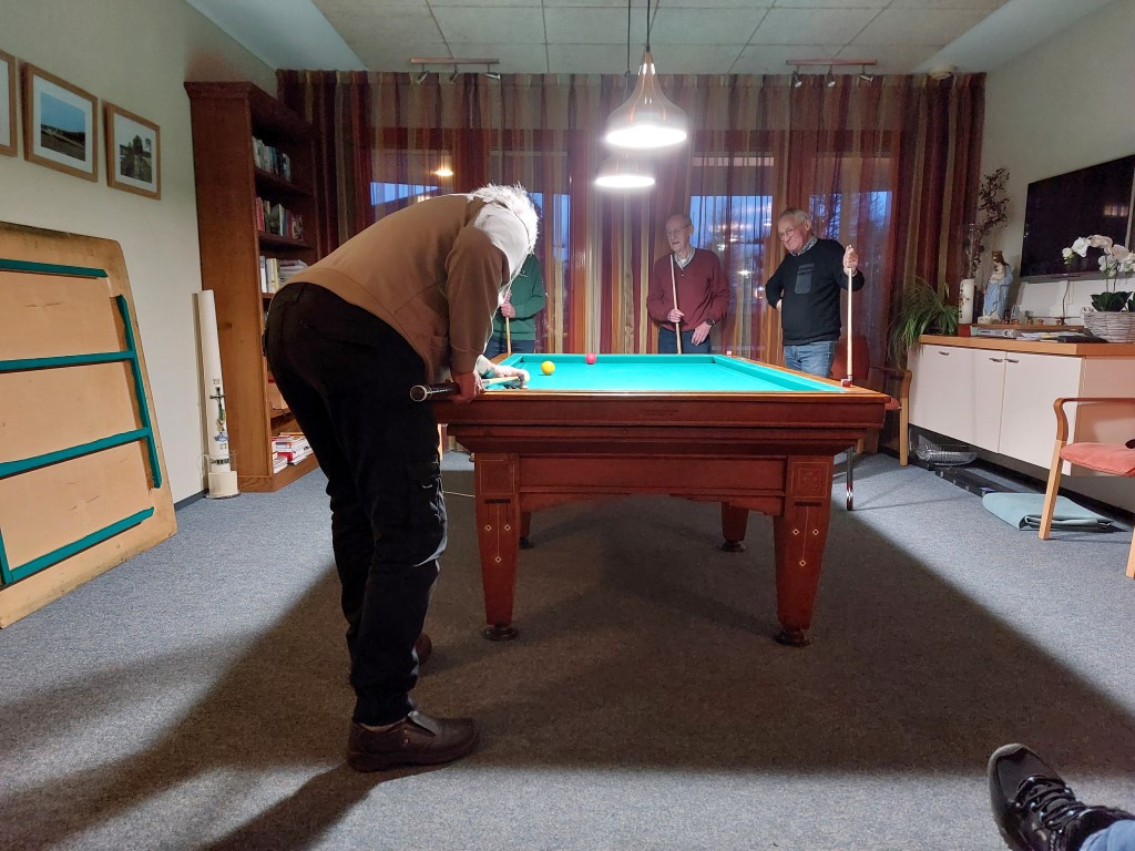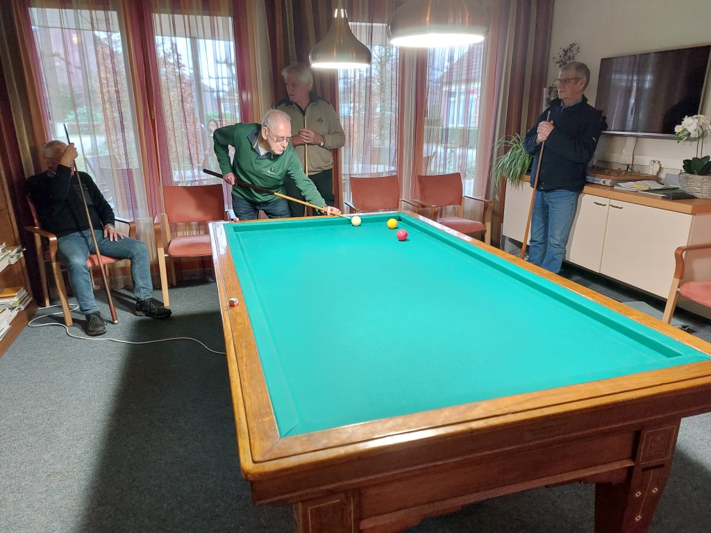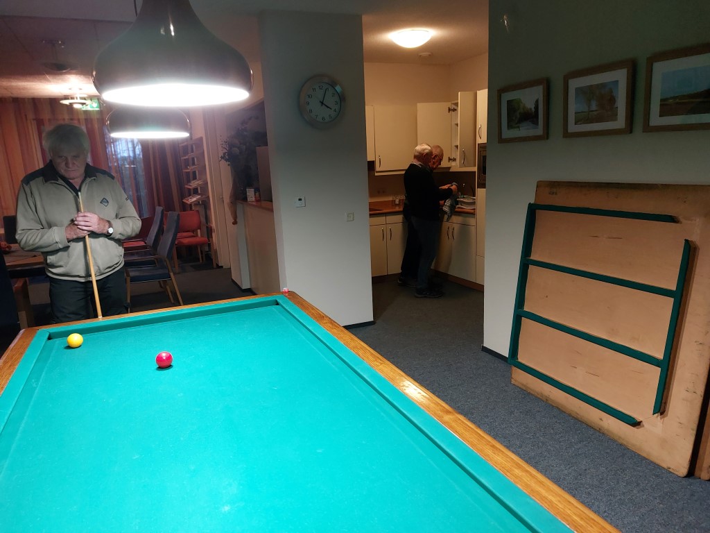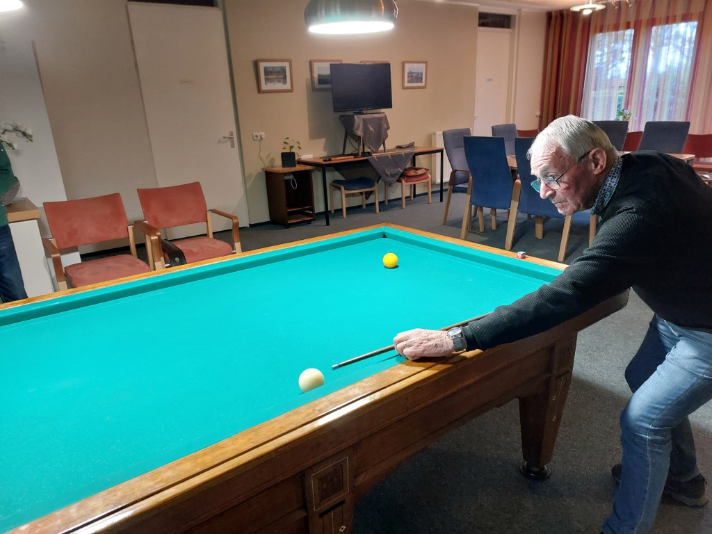 Voor het biljarten werd het biljart verplaatst naar de ontmoetigsruimte. Omdat ook de activiteit “Meer bewegen voor ouderen” hier plaatsvindt moest er wat aan de aanvangstijden gemorreld worden. Maar dankzij de bereidwilligheid van de deelnemers is een bevredigende oplossing gevonden.