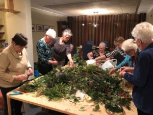 Vanavond kwamen 10 dames in de ontmoetingsruimte bij elkaar om, met hulp en deskundig advies van Martha,een mooi kerststukje te maken.